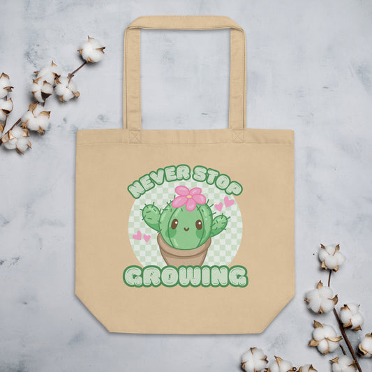 Never Stop Growing Cute Kawaii Cactus Eco Tote Bag
