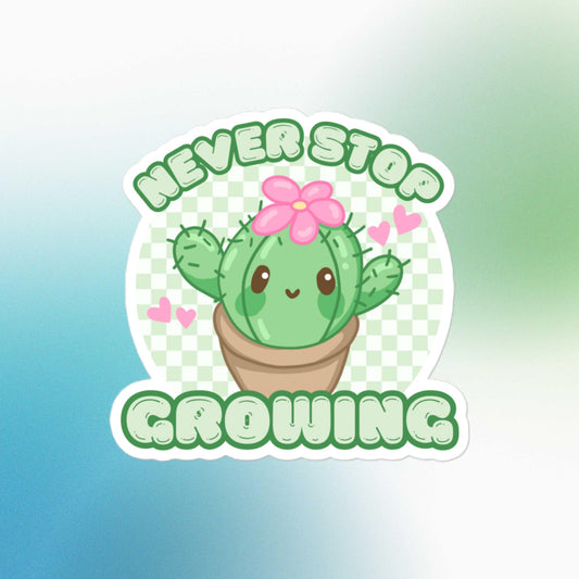 Never Stop Growing Cute Kawaii Cactus Bubble-free Stickers